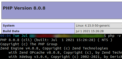 The process was nearly as seamless as you'd expect, with the only hiccup being a phpMyAdmin white screen caused by curly bracket access to array values being deprecated in an older version of PHP (between my previous 7.29 and my shiny new 8.0.8), but now it's all good in both Apache and on the CLI